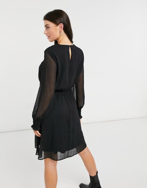 Vero Moda kjole Str. Kjole fra Vero Moda Knæk tøjkoden V-hals Pufærmer Manchetter med knapper Slå om-stil foran Bindebånd i siden Normal pasform Almindelig i størrelsen. Vero Moda Easy Kjole Sort.